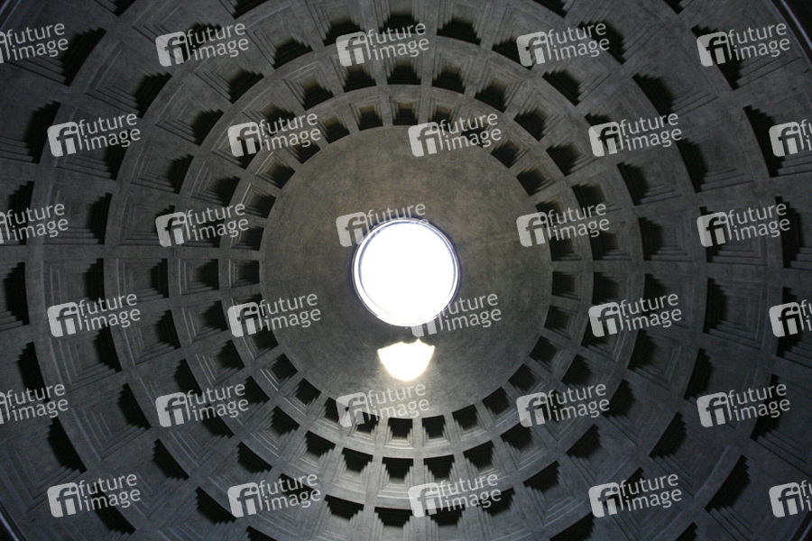 ein allen (Haupt-)Göttern geweihtes Heiligtum, Kaiser Hadrian ließ es auf dem Marsfeld in Rom zwischen 118 und 125 n. Chr. erbauen, war für länger als 1700 Jahre die größte Kuppel der Welt gemessen am Innendurchmesser, seit dem 13. Mai 609 eine römisch-katholische Kirche, das Hauptgebäude des Pantheons ist ein überwölbter Rundbau von ca. 43 m Innendurchmesser und -höhe, der Schlussstein hat eine neun Meter große Öffnung (Opaion) - die als einzige Lichtquelle dient