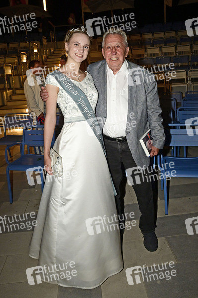 Maxi Hiemann und Egon Krenz bei der Premiere des Theaterstücks 'Maxe Baumann - Ferien ohne Ende' während der Beelitzer Festspiele 2025 auf der Freilichtbühne. Beelitz, 14.08.2025