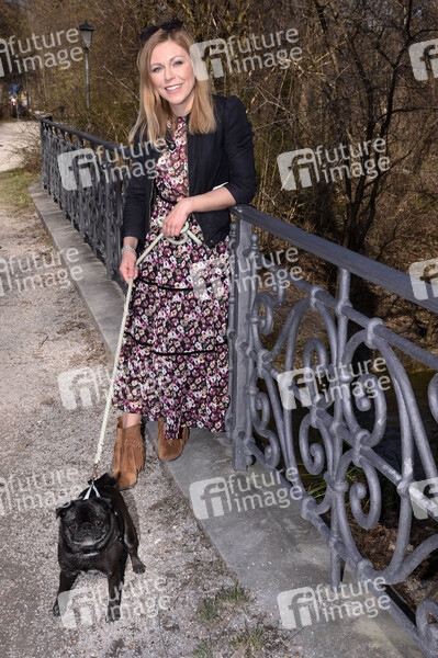 Anna Ewelina beim Spaziergang mit Hund Resi am Kleinhesseloher See im Englischen Garten. München, 28. 03.2021