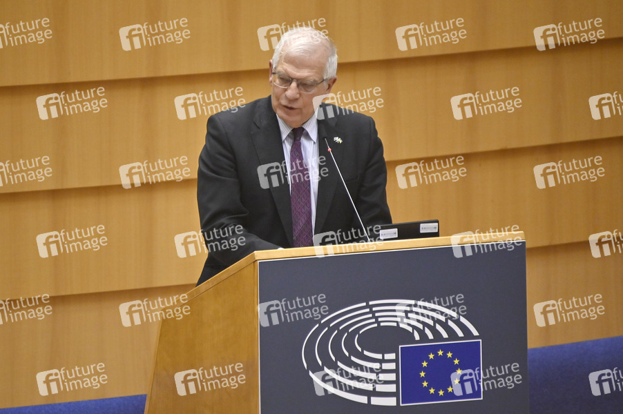 Josep Borrell Fontelles bei der Debatte über die Aggression Russlands gegen die Ukraine im Plenarsaal des Europäischen Parlaments. Brüssel, 01.03.2022