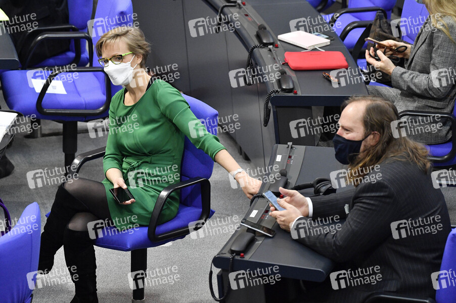 Franziska Brantner und Anton Hofreiter in der 212. Sitzung des Deutschen Bundestages im Reichstagsgebäude. Berlin, 25.02.2021
