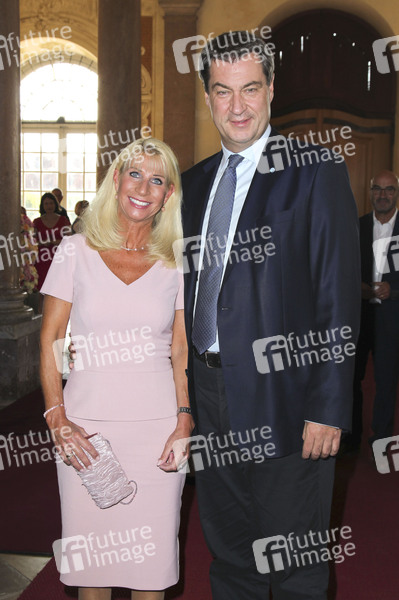 Markus Söder mit Ehefrau Karin Baumüller beim Sommerempfang des Bayerischen Landtags auf Schloss Schleißheim. Oberschleißheim, 16.07.2019
