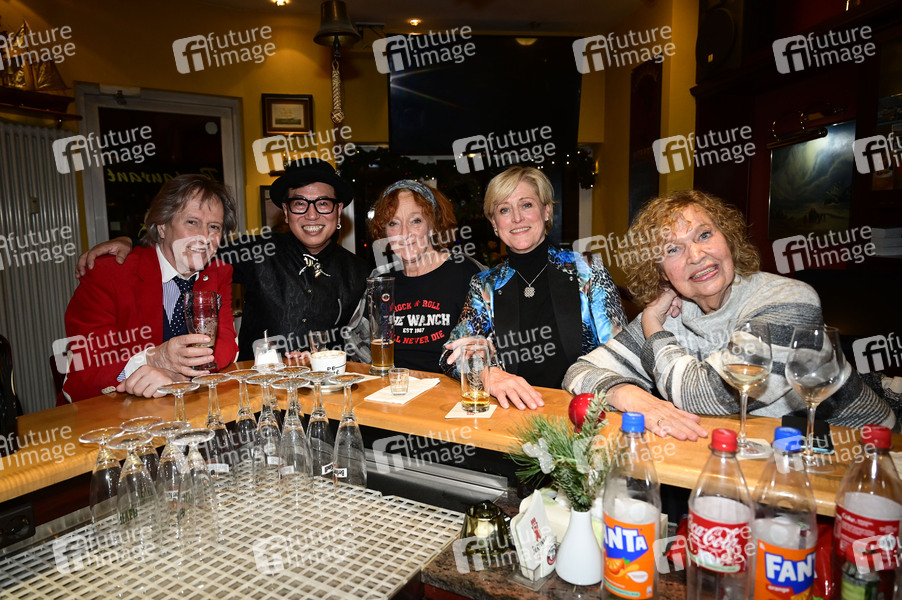 Bert Beel, Hongbin Ma, Dagmar Gelbke, Ines-Marie Jaeger und Urte Blankenstein beim Künstler-Stammtisch im Restaurant Galija am Schloss. Berlin, 03.12.2024