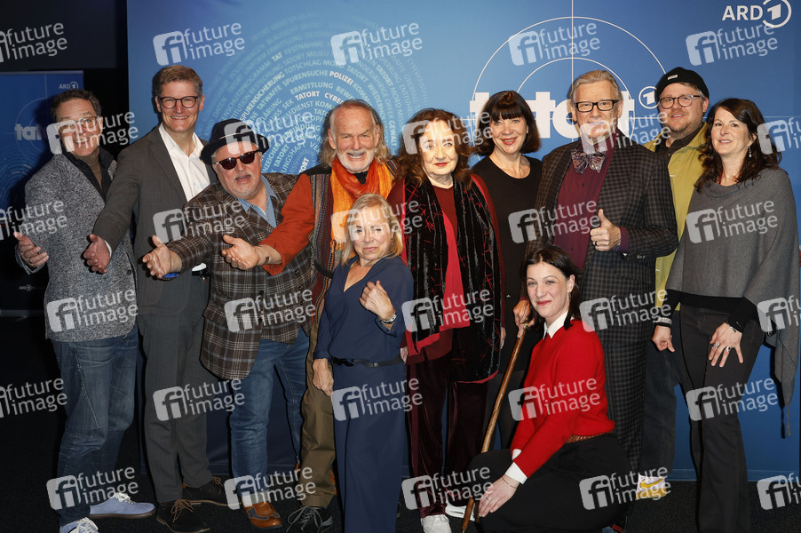 Axel Prahl, ChrisTine Urspruch, Claus Dieter Clausnitzer, Mechthild Großmann, Jutta Müller, Hannes Hellmann, Björn Meyer und Sophie Seitz mit Team bei der Premiere des ARD Fernsehfilms 'Tatort - Die Erfindung des Rades' im Cineplex. Münster, 25.11.2025