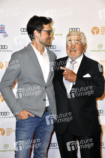 Simon Verhoeven und Mario Adorf bei der 63. Verleihung vom Ernst-Lubitsch-Preis 2021 in der Astor Film Lounge. Berlin, 28.09.2021