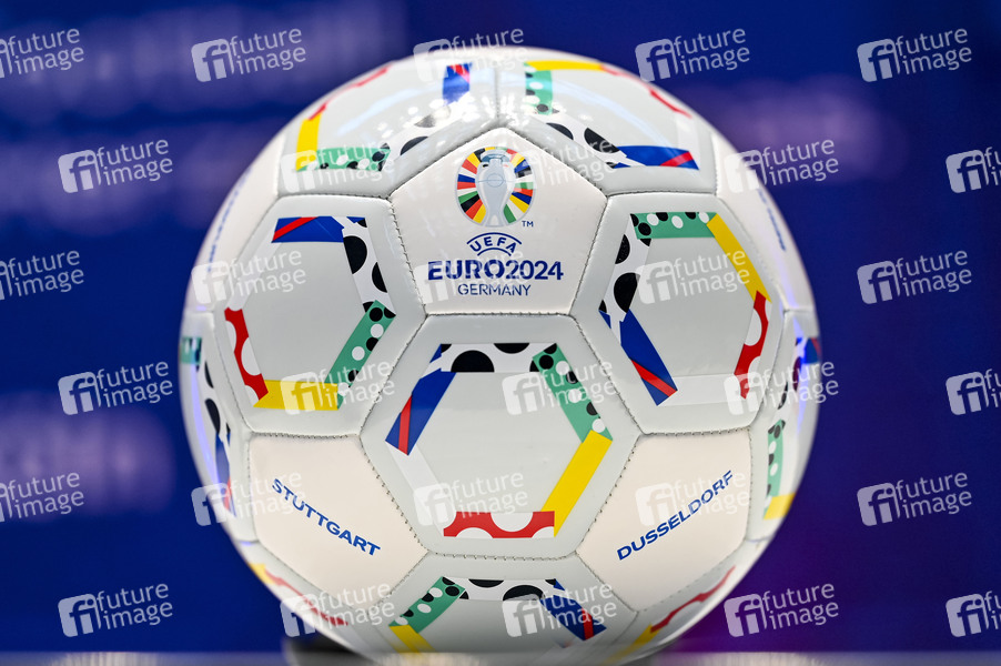 UEFA Euro 2024 Ball bei der Vorstellung der Planungen für die Fußball-Europameisterschaft 2024 in Deutschland im Kölner Rathaus. Insgesamt fünf Spiele der Fußball-Europameisterschaft sollen in Köln im RheinEnergie-Stadion ausgetragen werden. Köln, 01.12.2022