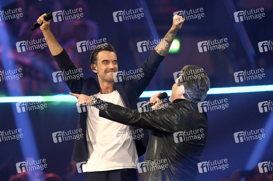 Florian Silbereisen und Thomas Anders in der TV Show 'Schlagerbooom 2021 - Alles funkelt! Alles glitzert!' in der Dortmunder Westfalenhalle. Dortmund, 23.10.2021