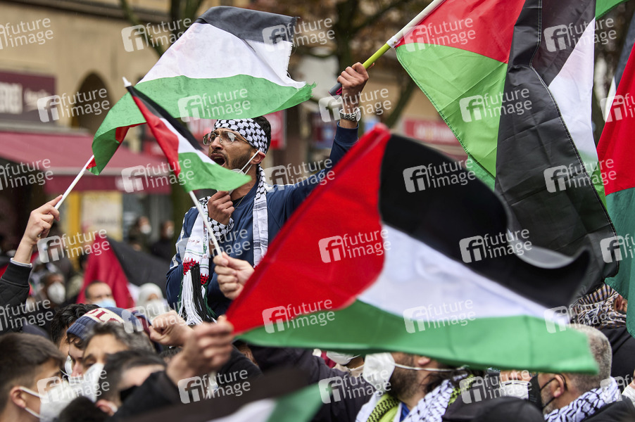 Demonstration in Berlin lebender Palästinenser unter dem Motto 'Gegen die israelische Besatzungswillkür und Aggression gegen die Menschen in Gaza, Jerusalem, in der palästinensischen Tiefe und Westbank, sowie Solidarität mit den würdevollen und standhaften Menschen in Gaza'. Berlin, 14.05.2021