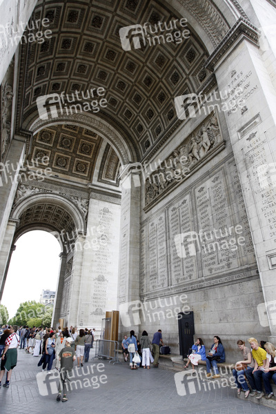 der Triumphbogen wurde 1806 von Napoleon nach der Schlacht von Austerlitz zur Verherrlichung seiner Siege in Auftrag gegeben, nach Unterbrechung vollendet 1936, 49 m hoch, 45 m breit, 22 m tief, die Innenwände des Triumphbogens beherbergen ein kleines Museum und führen die Namen von 558 französischen Generälen auf