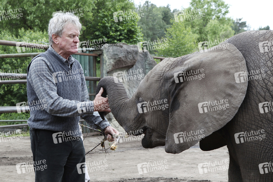Start der Fan Fun Runde mit Elefantendame Nelly im Serengeti-Park, Hodenhagen. Gemeinsam mit Sepp Maier tippte Sie heute für das erste Spiel der deutschen Fußballnationalmannschaft gegen Portugal