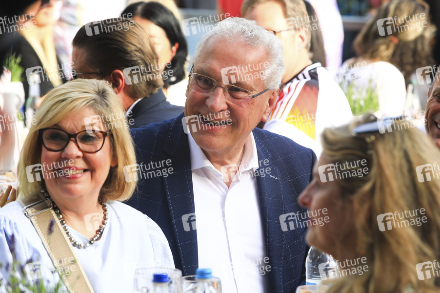 Joachim Herrmann mit Ehefrau Gerswid Herrmann beim Greipl Charity Sommerfest zugunsten von LichtBlick Seniorenhilfe e.V. im Prof. Erich Greipl Stadion. Ismaning, 05.07.2024