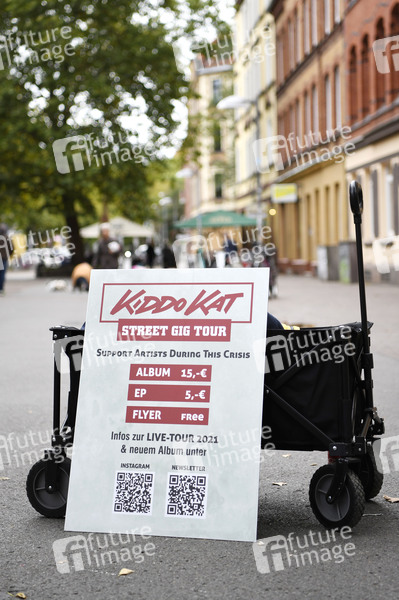 Kiddo Kat spielt ein Straßenkonzert im Rahmen ihrer Street Gig Tour während der Corona-Pandemie in der Limmerstraße. Hannover, 05.10.2020