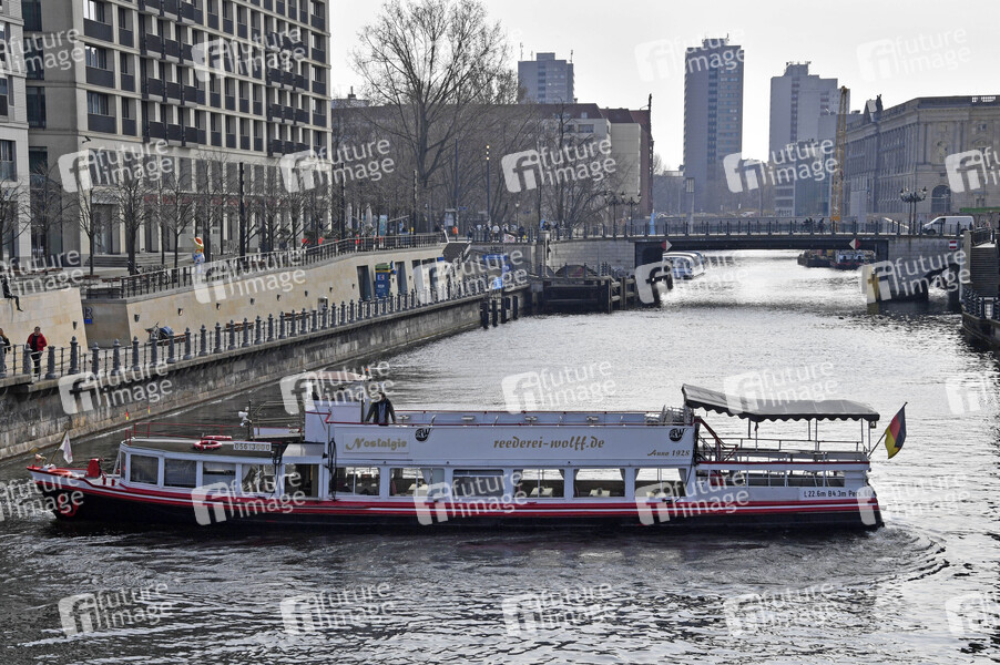 Leerer Ausflugsdampfer auf der Spree. Nach zuletzt beschlossenen Schutzmaßnahmen gegen die Ausbreitung des Corona-Virus kommt das öffentliche Leben in Berlin nahezu zum Erliegen. Betroffen sind fast alle Sehenswürdigkeiten, Museen, Plätze, Strassen, Restaurants, Biergärten, Universitäten u.v.m. Berlin, 17.03.2020