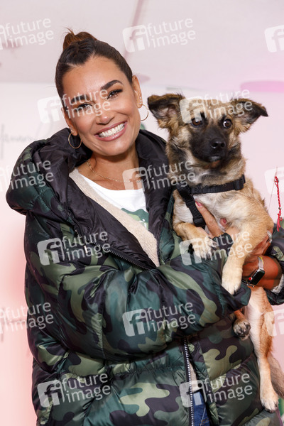 Jana Ina Zarrella mit Hund Cici beim Pressetermin zur Charity-Initinative 'Tierisch engagiert' unterstützt von Fressnapf im Tierheim Köln-Zollstock. Für die Aktion 'Freundschaft verbindet' hat sie ein Freundschaftsarmband designt, dessen Erlöse direkt an den Tierschutz und in tiertherapeutische Einrichtungen fließt. Köln, 29.09.2020