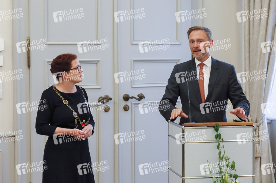 Katja Dörner und Christian Lindner beim Bildtermin vom Eintrag einiger G7-Finanzminister und Notenbankgouverneure ins Goldene Buch der Stadt Bonn im Alten Rathaus. Bonn, 19.05.2022