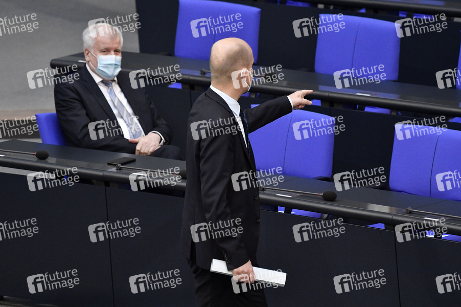 Horst Seehofer und Ralph Brinkhaus in der 223. Sitzung des Deutschen Bundestages im Reichstagsgebäude. Berlin, 21.04.2021
