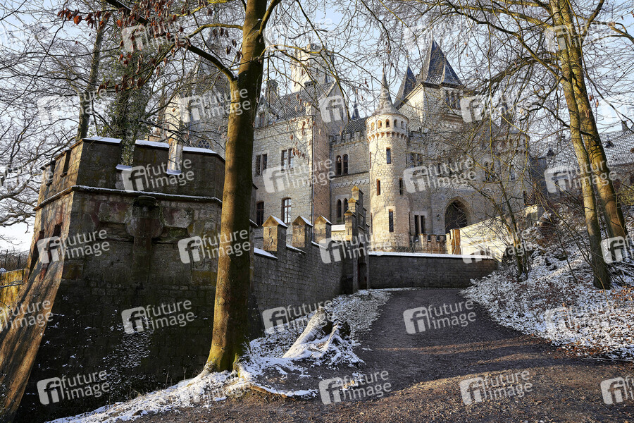 offizieller Wohnsitz der Prinzen von Hannover, Welfen, Bauzeit 1857-1867, Ernst August von Hannover, Neugotik, Architekt: Conrad Wilhelm Hase, Pattensen, Schnee, Winter, Winterlandschaft, Berg, Burg, Ausflugsziel, Sehenswürdigkeit