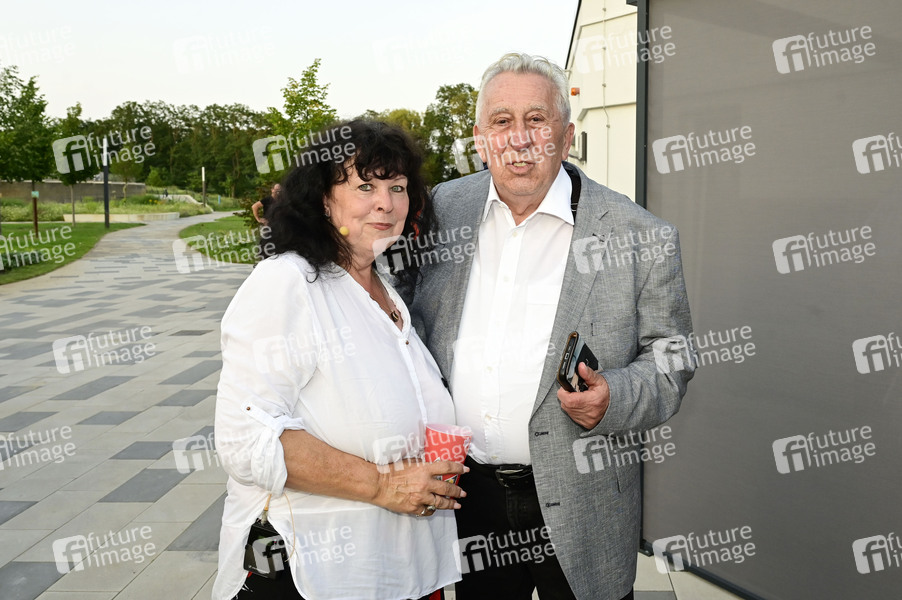 Heike Köfer und Egon Krenz bei der Premiere des Theaterstücks 'Maxe Baumann - Ferien ohne Ende' während der Beelitzer Festspiele 2025 auf der Freilichtbühne. Beelitz, 14.08.2025