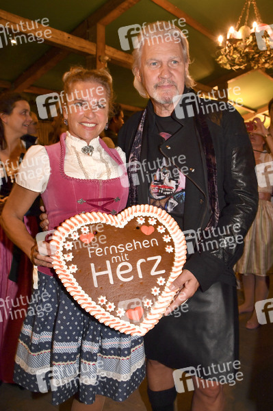 Christine Neubauer und Johnny Logan beim Fernsehen mit Herz Wiesn-Treff in Kufflers Weinzelt. München, 24.09.2019