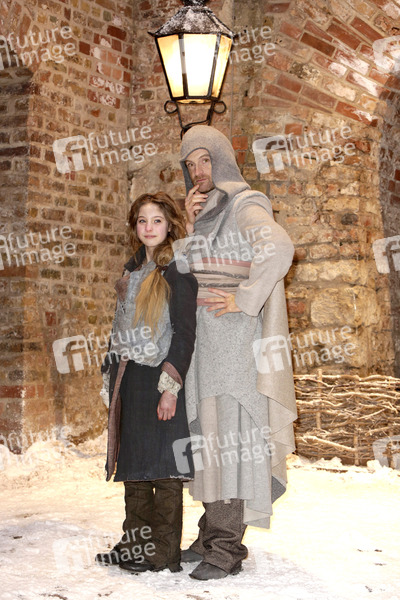 Lea Mueller und Joerg Hartmann beim Fototermin am Set des Fernsehfilms 'Das Mädchen mit den Schwefelhölzern' aus der ARD-Märchenreihe 'Sechs auf einen Streich' in der Zitadelle Spandau. Berlin, 18.03.2013