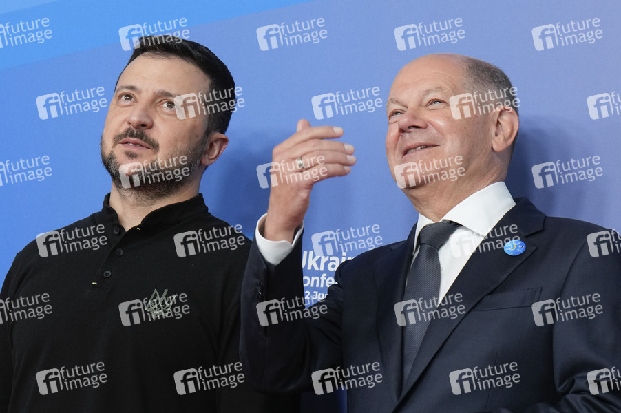 Konferenz, URC2024, Ukraine-Wiederaufbaukonferenz, Politik, Unterstützung, Hilfe, Wiederaufbau, Krieg, Solidarität, Politiker, Präsident der Ukraine, Volodymyr Zelenskyy, Volodymyr Oleksandrovyč Zelensʹkyj, Bundeskanzler