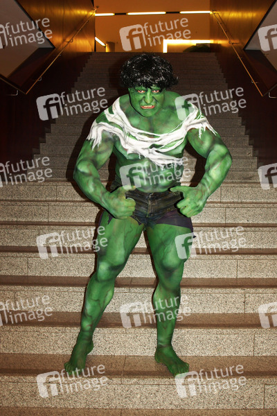 Comics-Bodypainting und Photoshooting mit Olimp-Model Horst und Model Lena im Ruhr Congress Centrum, Bochum. Body Paint Künstler: Jörg Düsterwald