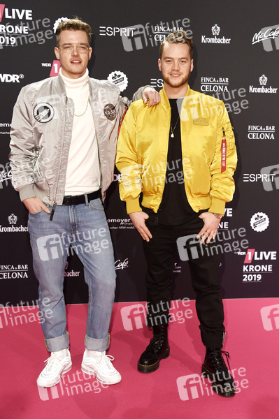 Tobias Bogdon und Gregor Sahm von YouNotUs bei der 20. Verleihung der 1Live Krone 2019 in der Jahrhunderthalle. Bochum, 05.12.2019