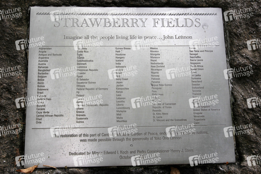 Plakette der 121 Staaten im Strawberry Field