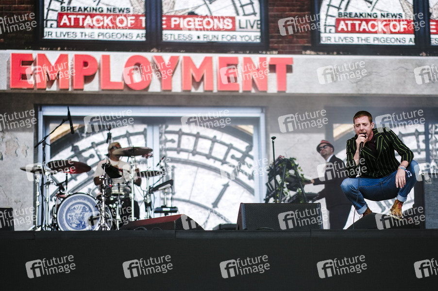 Vijay Mistry, Nick 'Peanut' Baines und Ricky Wilson von den Kaiser Chiefs live auf dem Glastonbury Festival 2025 auf der Worthy Farm. Pilton, 28.06.2025