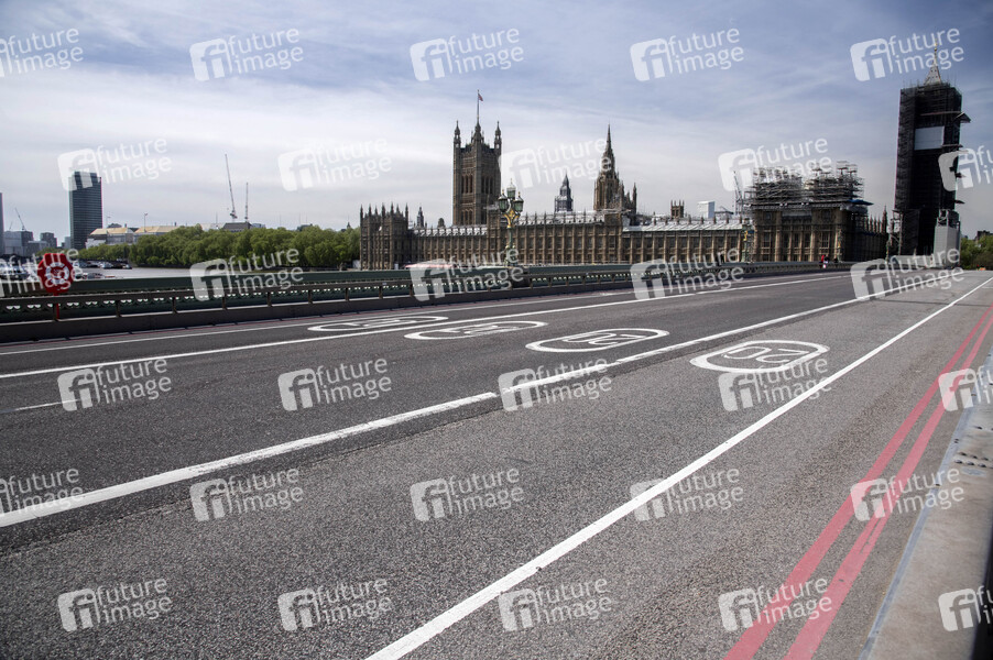 Westminster Bridge - Londons Straßen und Touristenattraktionen sind aufgrund des Coronavirus Lockdown menschenleer. London, 05.05.2020
