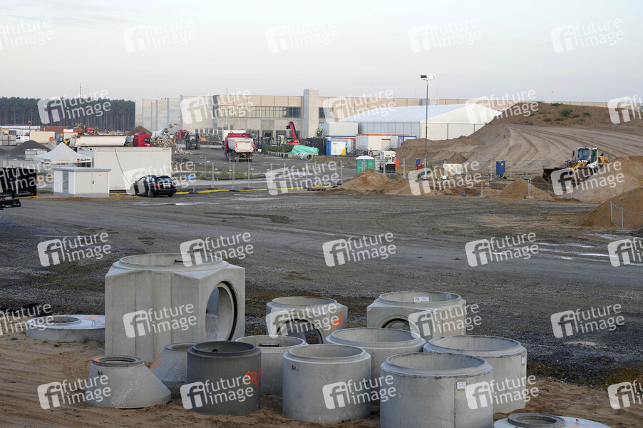 Elektroauto, Elektrofahrzeuge, PKW, Auto, Model Y, Model 3, Großfabrik, Automobilhersteller, Autobauer, Elektromobilität, umweltfreundlich, vorläufige Genehmigung, Batteriefabrik, Großprojekt, Investition, Baugenehmigung, Vorab-Genehmigung, E-Auto-Fabrik, Umwelt, Klimaschutz, Baustelle, Bauen, Baubranche, Bau-Branche, Bauarbeiten, Großbaustelle, Bagger, Kran, Kräne, Baustelle, Batterie-Fabrik