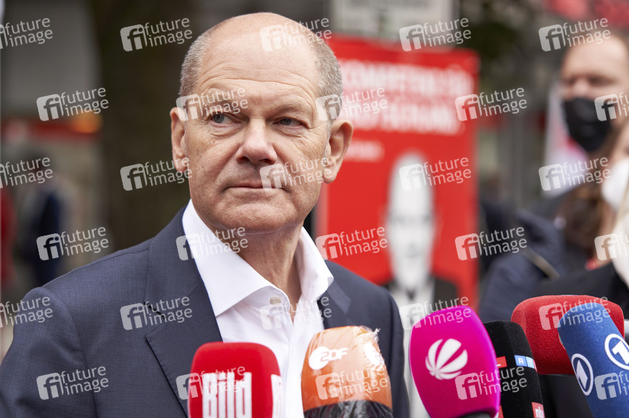 Olaf Scholz bei einer Wahlkampfveranstaltung der SPD auf der Burgdorfer Szraße. Lehrte, 21.09.2021