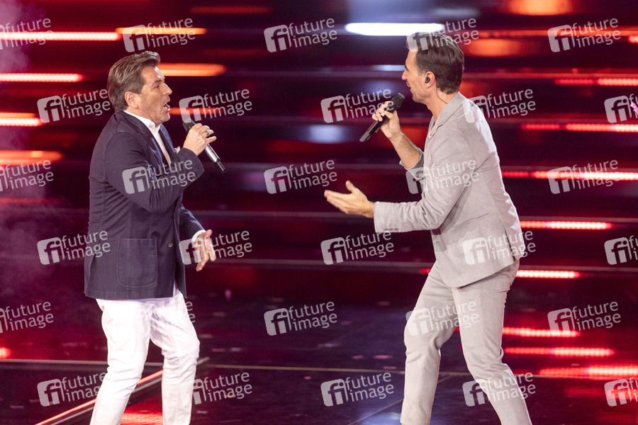 Florian Silbereisen und Thomas Anders bei der Aufzeichnung der TV-Show 'Das grosse Schlagerjubiläum 2022 - Auf die nächsten 100!' im Studio 3 der Media City. Leipzig, 21.10.2022