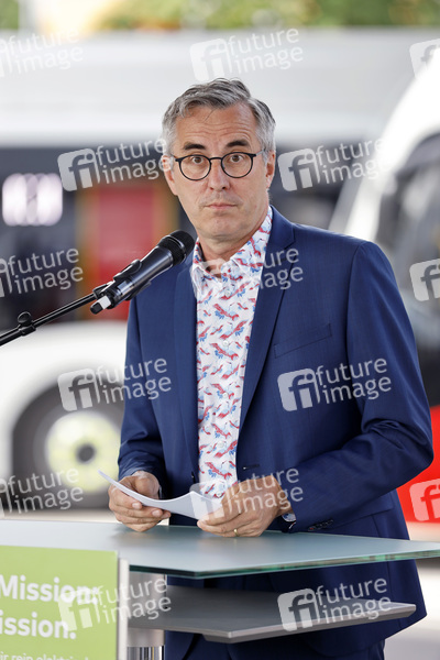 Andreas Wolter beim Besuch von Umweltministerin Svenja Schulze und NRW-Verkehrsminister Hendrik Wüst bei der KVB Köln mit symbolischer Inbetriebnahme der neuen Ladeinfrastruktur für Elektro-Busse. Köln, 29.06.2021