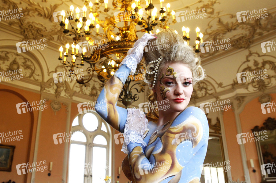Barock Bodypainting mit Model Daniela im Schloss Hasperde. Hasperde, 25.02.2014 - Body Paint Künstler: Jörg Düsterwald, Frisur und Make-up: Janina Horstmann