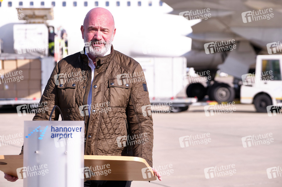 Bernd Osterloh (Vorsitzender des Gesamt- und Konzernbetriebsrats der Volkswagen AG) - Volkswagen empfängt Luftfracht mit 5 Million Schutzmasken und medizinische Hilfsmaterialien aus China auf dem Hannover Airport. Hannover, 26.04.2020