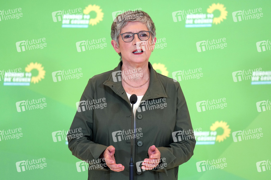 Britta Haßelmann beim Pressestatement zur Fraktionssitzung der Bündnis 90/Die Grünen-Bundestagsfraktion im Reichstagsgebäude. Berlin, 24.09.2024