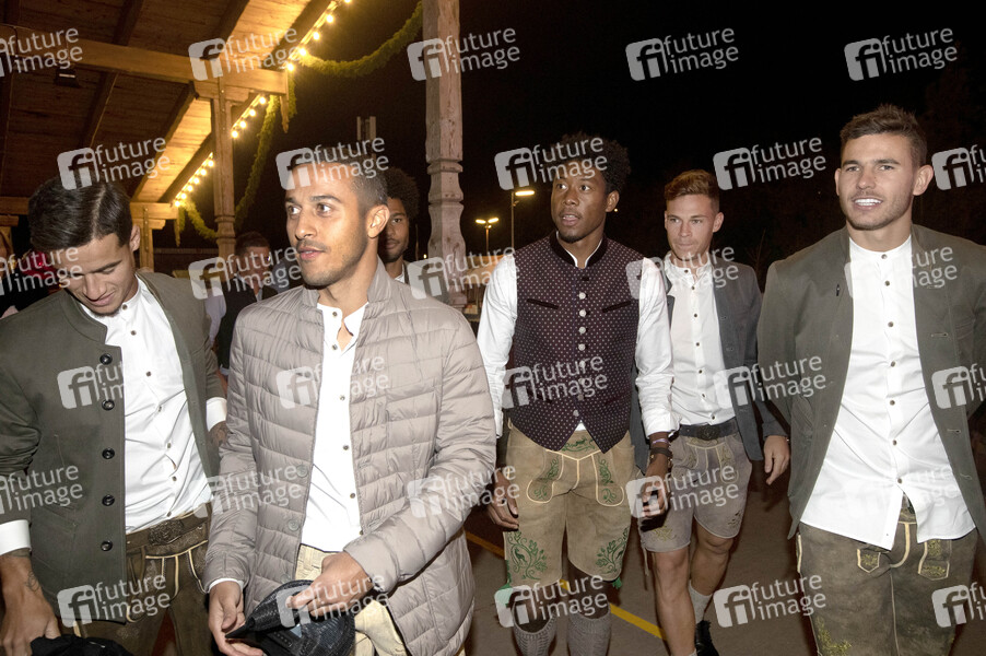 Philippe Coutinho, Thiago Alcantara, Serge Gnabry, David Alaba, Joshua Kimmich und Lucas Hernandez in der Käfer Wiesn Schänke auf dem Oktoberfest 2019. München, 24.09.2019