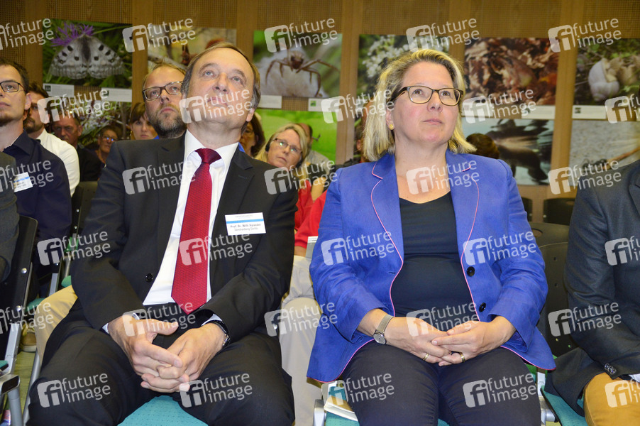 Willi Xylander und Bundesumweltministerin Svenja Schulze beim Besuch der Dokumentations- und Beratungsstelle des Bundes zum Thema Wolf im DBBW. Görlitz, 08.07.2019