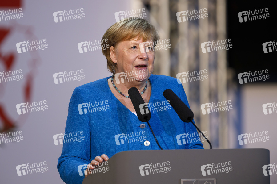 Angela Merkel beim Festakt zum 75. Geburtstag des Landes Nordrhein-Westfalen auf der Düsseldorfer Galopprennbahn. Düsseldorf, 23.08.2021