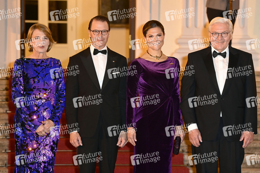 Elke Büdenbender, Prinz Daniel von Schweden, Kronprinzessin Victoria von Schweden und Frank-Walter Steinmeier bei der Ankunft zum Abendessen anlässlich des 25. Jubiläums der Nordischen Botschaften im Schloss Bellevue. Berlin, 21.10.2024