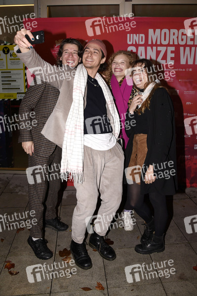 Tonio Schneider, Noah Saavedra, Luisa-Celine Gaffron und Mala Emde bei der Preview des Kinofilms 'Und morgen die ganze Welt' im City Kino. München, 29.10.2020