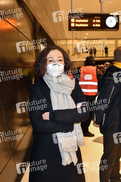 Ramona Pop bei der Eröffnung der U5-Neubaustrecke am U-Bahnhof Rotes Rathaus. Am 04.12.2020 ist der 'Lückenschluss U5' vollbracht. Er verbindet die traditionelle Linie U5 von Hönow bis Alexanderplatz mit der U55 zwischen Alexanderplatz und Brandenburger Tor. Es umfasst den Bau von 2,2 Kilometern Tunnelstrecke und drei neuen U-Bahnhöfen: Rotes Rathaus, Museumsinsel sowie Unter den Linden. 04.12.2020