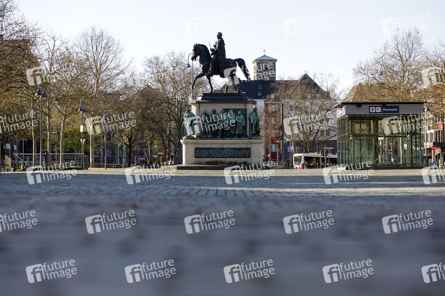Der menschenleere Heumarkt mit Reiterdenkmal während der Corona-Krise. Köln, 22.03.2020