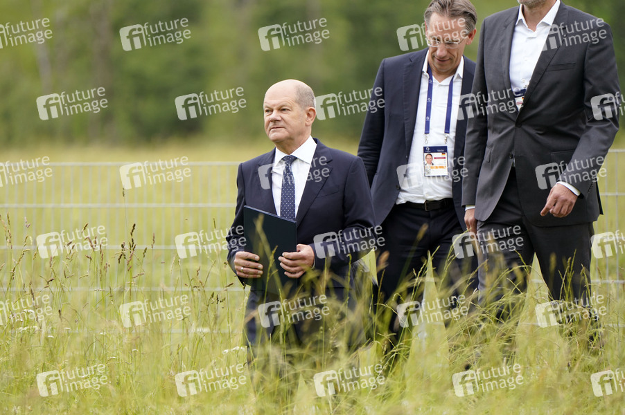 Olaf Scholz bei der Abschlusspressekonferenz zum G7-Gipfel auf Schloss Elmau. Klais, 28.06..2022