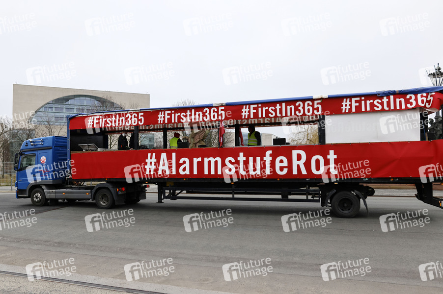 Nach 365 Tagen Lockdown in der Veranstaltungswirtschaft findet heute eine Auto-Demonstration zur Rettung der Veranstaltungswirtschaft vom Aktionsbündnis 'Alarmstufe Rot' statt. Die Route führt u.a. am Bundeskanzleramt vorbei. Berlin, 28.02.2021
