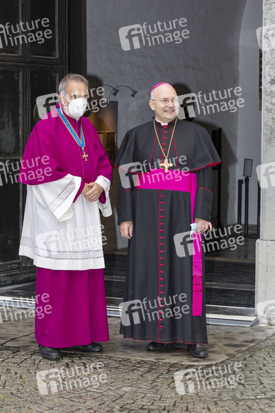 Rolf-Peter Cremer und Bischof Dr. Helmut Dieser beim ökumenischen Gottesdienst für die Opfer der Flutkatastrophe im Hohen Dom zu Aachen. Aachen, 28.08.2021