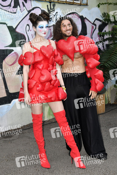 Klaudia Giez und Adriano Salvaggio bei der Premiere der internationalen Ausstellung 'Tim Burton's Labyrinth' in der Radsetzerei auf dem RAW-Gelände. Berlin, 18.07.2024