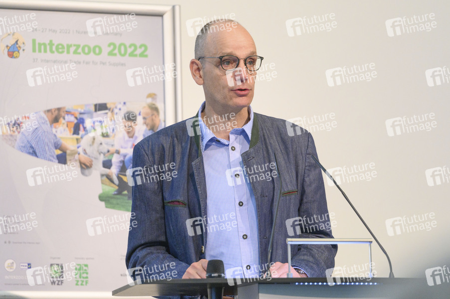 Georg Müller (Vorsitzender des Industrieverbandes Heimtierbedarf - IVH) bei einer Presskonferenz zur Leitmesse für die internationale Heimtierbranche 'Interzoo 2022' im Messezentrum. Nürnberg, 24.05.2022
