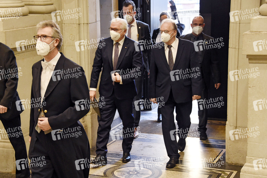 Frank-Walter Steinmeier und Reiner Haseloff in der 1000. Sitzung des Deutschen Bundesrates im Bundesrat. Berlin, 12.02.2021